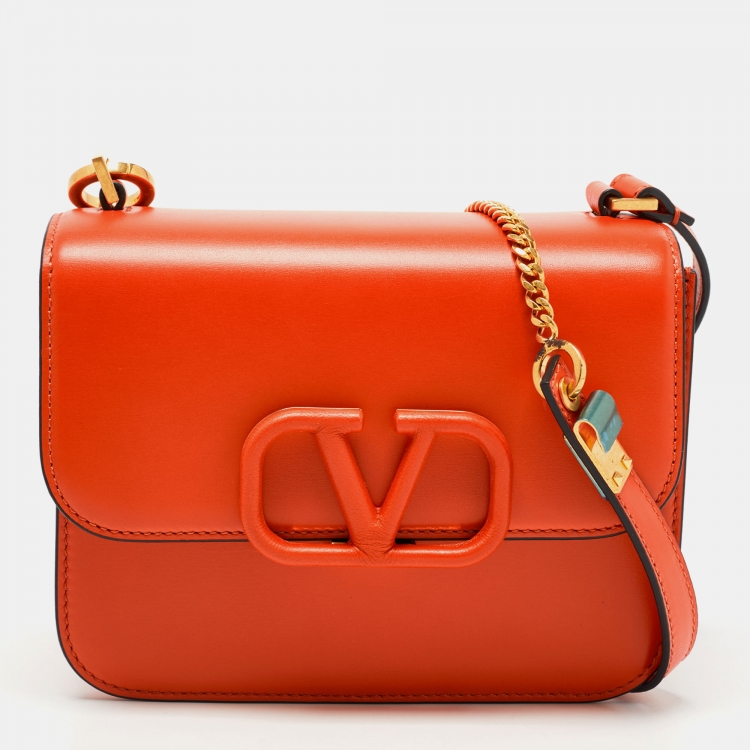 Pre Owned Valentino Orange Leather Small VSling Shoulder Bag