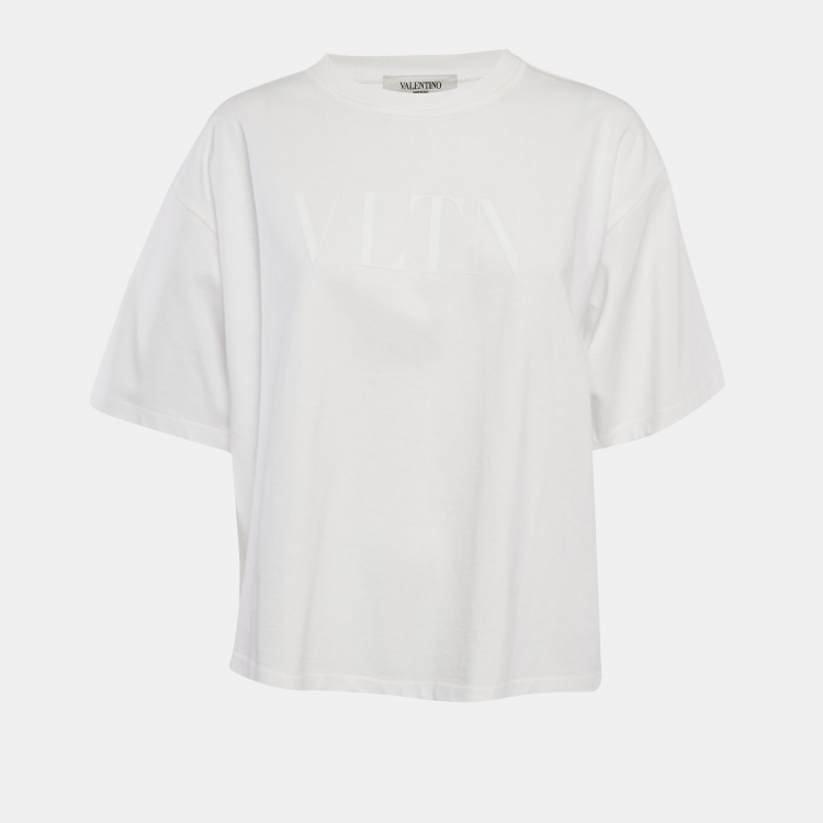 Pre Owned تي شيرت فالنتينو قطن أبيض بطباعة شعار فضفاض رقبة مستديرة مقاس متوسط - ميديوم