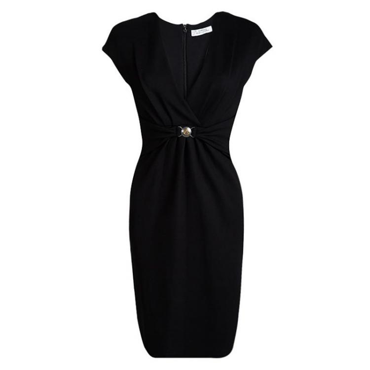 مملوكة مسبقًا فستان فيرساتشي كولكشن دونا أبيتو جيرسيه أسود بإبزيم بالشعار M