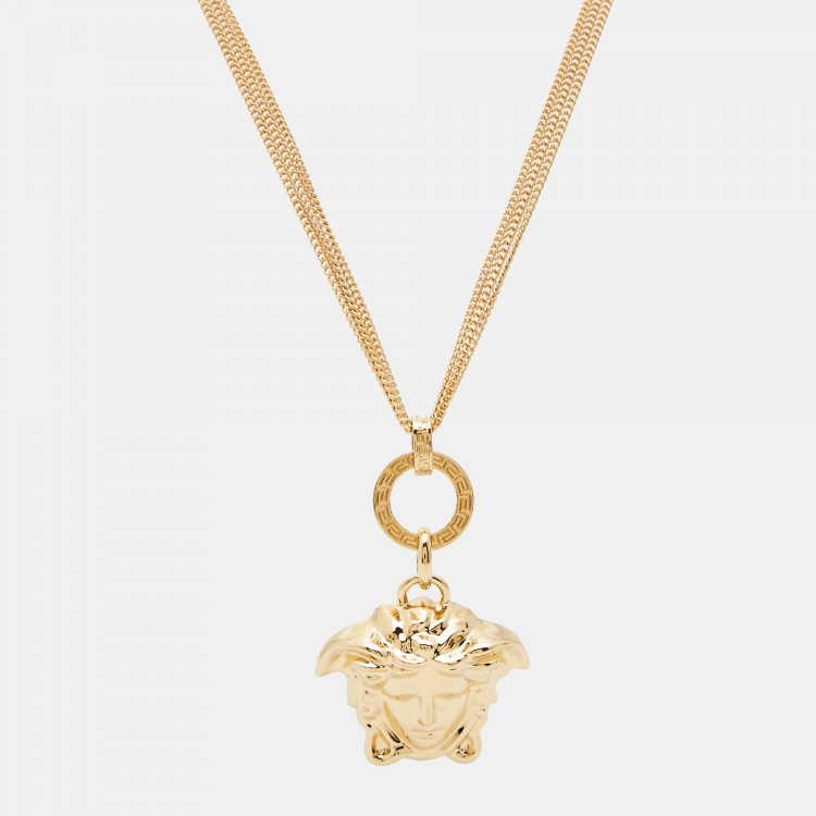Versace Medusa Gold Tone Triple Chain Pendant Necklace