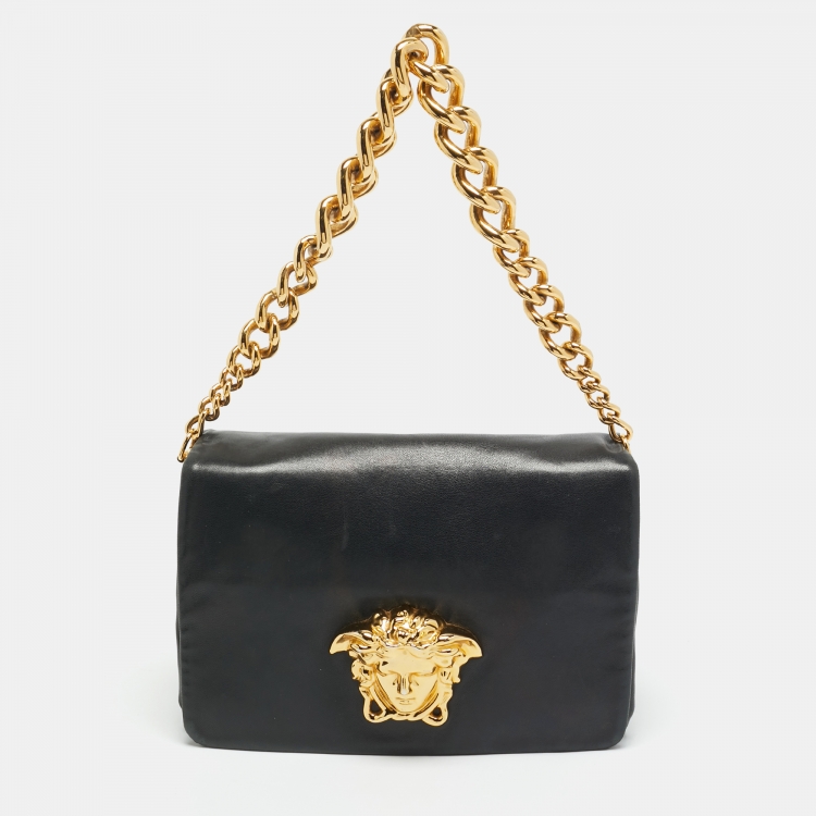 Pre Owned حقيبة كتف فيرساتشي ميدوسا سلطان جلد أسود
