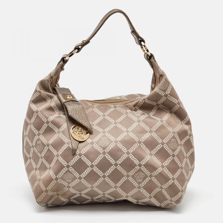 مملوكة مسبقًا حقيبة هوبو فيرساتشي شانم جلد وتوقيع معدني قصر بالسزوة