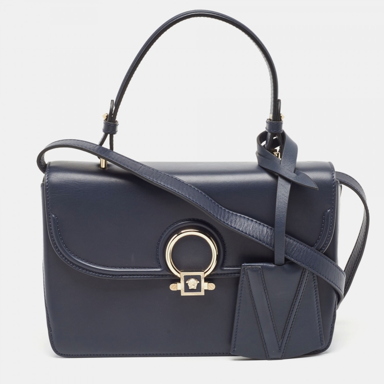 حقيبة فيرساتشي دي ڨي وان سويدي وجلد برتقالي/أزرق كحلي يد علوية