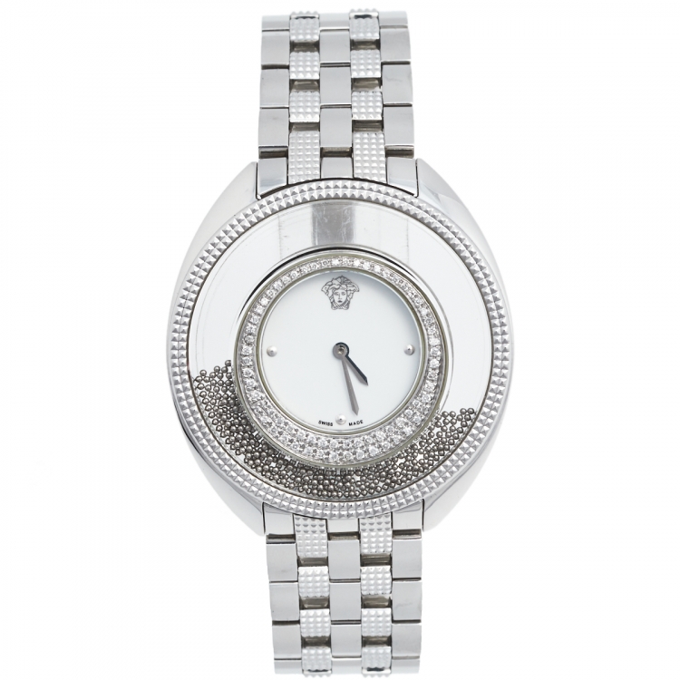 مملوكة مسبقًا Versace White Stainless Steel Diamond Destiny Spirit 86Q Women's Wristwatch 39 mm