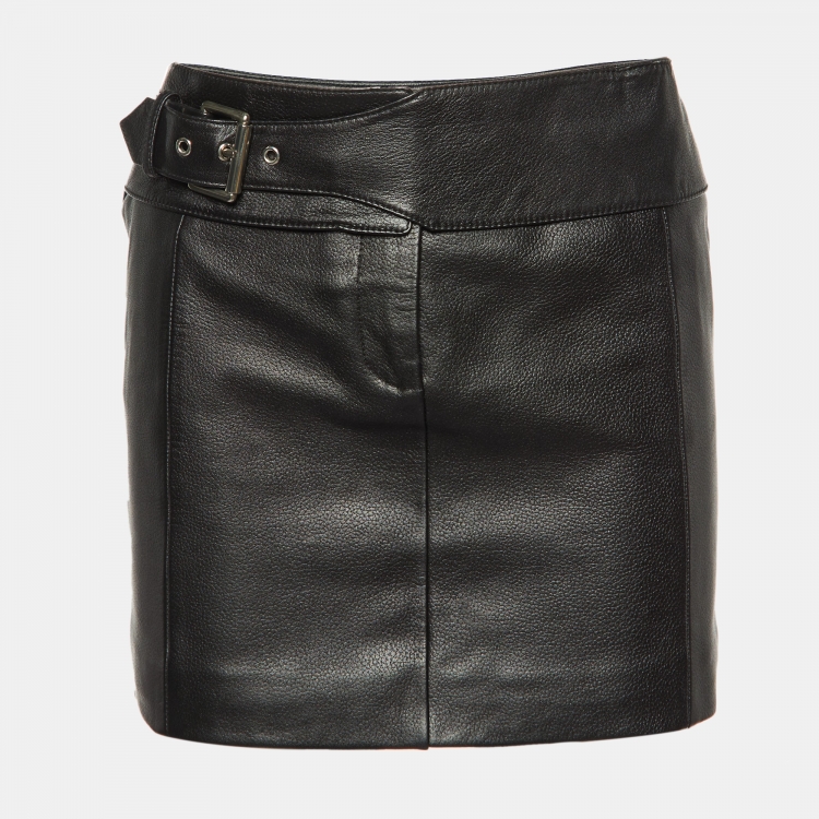 Pre Owned Versus Versace Black Leather Mini Skirt XS