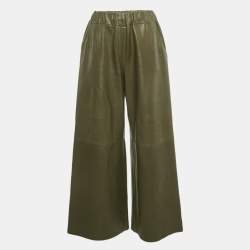 بنطلون لويفي أخضر من جلد طبيعي بساق واسعة، مقاس متوسط