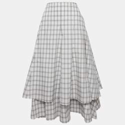 تنورة لويفي قطن بطبعة مربعات أبيض/رمادي بطبقات وسطى مقاس صغير (سمول)