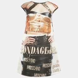 فستان شيفت موسكينو كوتور ستان مطبوع لون أسود مقاس صغير