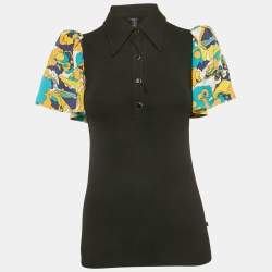 بلوزة لوي فيتون أسود تفاصيل دانتيل جيرسي مقاس صغير جداً (إكس سمول)