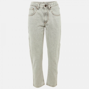 بنطلون جينز برونيللو كوتشينيلي رمادي فاتح دنيم بقصة ساق مستقيمة قياس صغير خصر 28"