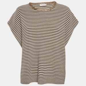 سترة برونيلو كوتشينيللي بني مخطط مزين محاك مقاس وسط