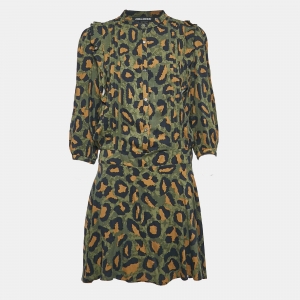 جمبسوت ساندرو بيج مطبوع مزيج من الكتان بتفاصيل رباط واسع الساق مقاس صغير