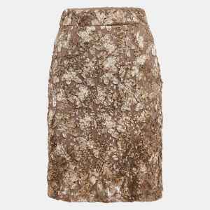 تنورة شانيل حرير أسود/بيج مقاس 38