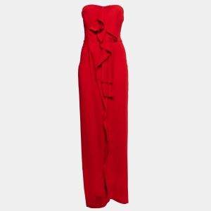 فستان ماكسي فالنتينو كريب أحمر مزين منفوش بلا حمالات مقاس متوسط (ميديوم)