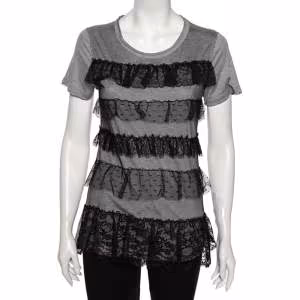 كنزة دولشي آند غابانا تريكو رمادي قابلة للتمدد بأكمام قصيرة صغيرة