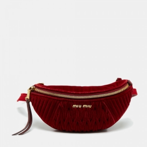 حقيبة خصر ميو ميو قطيفة ماتيلاس حمراء