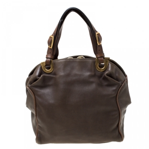 حقيبة ساتشل مارني قفل متعاكس جلد بني / خضراء زيتونية