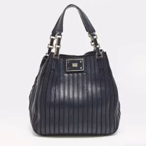حقيبة يد أنيا هندمارش "بيلفيديري" جلد مقلّم أزرق كحلي مع شامواه