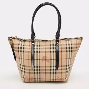 حقيبة يد توتس بربري هيركورت جلد وكانفاس هاوس تشيك بيج متوسطة