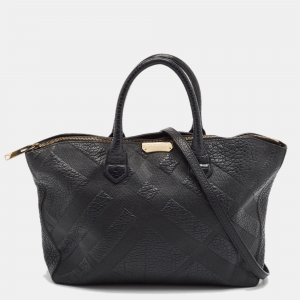 حقيبة يد توتس بربري بوكليه جلد ونايلون كاروهات نوفا أسود/أزرق كحلي