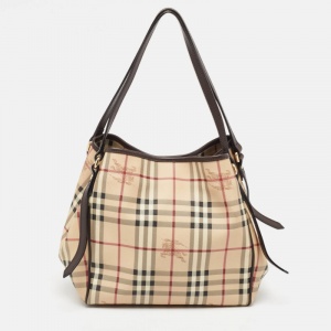 حقيبة يد توتس بربري قماش كاروهات هاوس تشيك وجلد بنية متوسطة