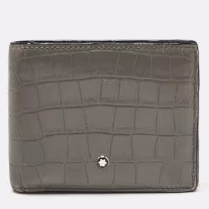 محفظة مون بلان ميسترستك جلد رمادي بتمساح مزدوجة الطي