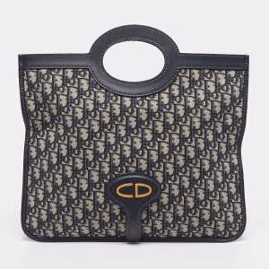 حقيبة كلتش ديور قماش أوبليك وبطانة جلد أزرق بحري قابلة للطي