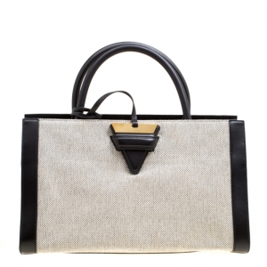 حقيبة كتف لويفي جلد وكانفاس بيضاء ورصاصية صغيرة