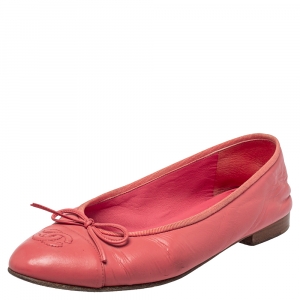 حذاء باليرينا فلات شانيل جلد وردي مرجاني مقدمة مزينة ش عار الماركة وفيونكة مقاس 40