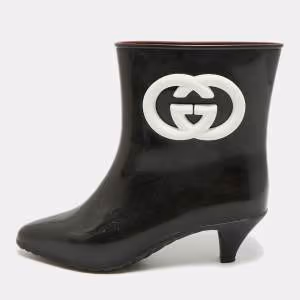 حذاء بوت كاحل غوتشي قماش GG وجلد أسود مقدمة مدببة مقاس 38.5