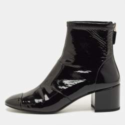 حذاء بوت كاحل شانيل مقدمة سي سي جلد أسود مقاس 38