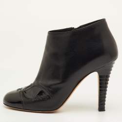 حذاء بوت كاحل شانيل كعب سى سى مقدمة مفتوحة جلد أسود مقاس 35.5
