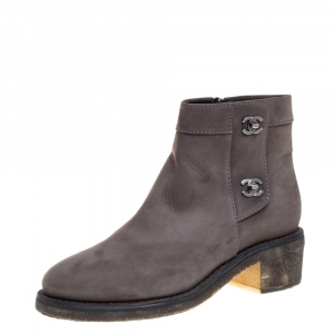 حذاء بوت للكاحل شانيل جلد رصاصي وأزرق مقاس 39