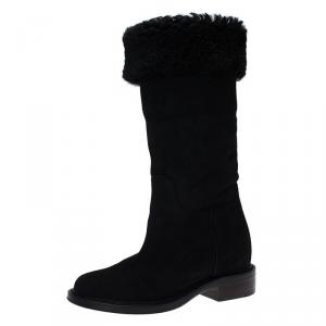 حذاء بوت شانيل جلد و سويدي أسود للكاحل مقاس 38.5