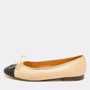 حذاء فلات باليه شانيل فيونكة سيات سي تو كاب جلد أسود مقاس 39