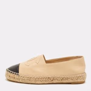 حذاء فلات إيسبادريل شانيل قماش وجلد فضي/أسود سي سي غطاء مقدمة مقاس 40