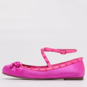 أحذية باليرينا فالنتينو جلد وردي وستان مع فيونكة على الكاحل مقاس 39.5