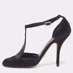 حذاء كعب عالي جينا مزخرف كريستال ساتان أسود مقاس 38