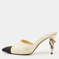 شبشب شانيل سي سي قماش و جلد بيج مقدمة مغطاة لؤلؤ زائف ثعباني مقاس 37.5