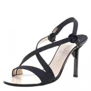 صندل شانيل سيور جلد لامع أسود مقاس 36