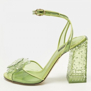 صندل دولتشي أند غابانا نعل سميك إسبادريل مزخرف كريستال بيانكا رافيا أخضر مقاس 38