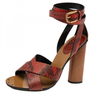 صندل غوتشي جلد ثعبان أحمر/أسود بسيور متعاكسة حزام للكاحل مقاس 38