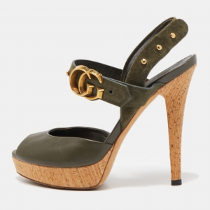 صندل سير كاحل غوتشي جي جي مارمونت جلد أسود مقاس 39.5