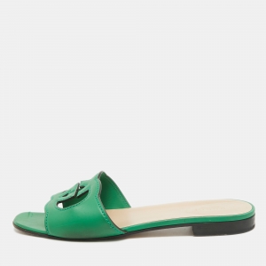 صندل سلايد غوتشي ساتان رمادي مزين بشعار جي جي مقاس 38