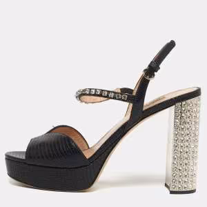 صندل ميو ميو سويـدي أسود مزخرف بالكريستال وسير كاحل مقاس 38