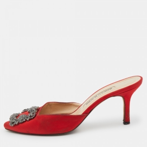 حذاء مولز مانويلو بلانيك بحزام جواهر ساتان أحمر Hangisi مقاس 37.5