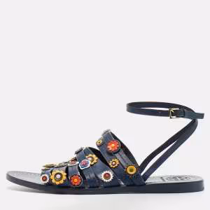 صندل كريستيان لوبوتان حزام كاحل منصة جلد وبني أزرق بحري مقاس 36