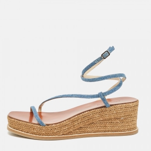 Pre Owned صندل جيمي تشو أزرق جينز بكعب إسفين مقاس 38