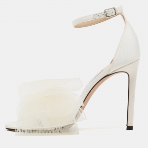 صندل برادا نعل سميك سير كاحل جلد وساتان فضي / أسود مقاس 39.5