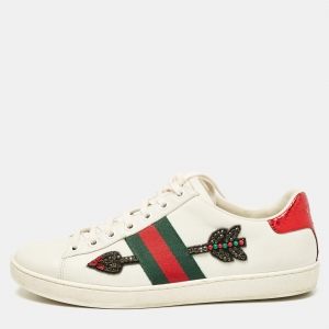 حذاء رياضي غوتشي أيس جلد أبيض عنق منخفض مزخرف بحلية سهم مقاس 38.5